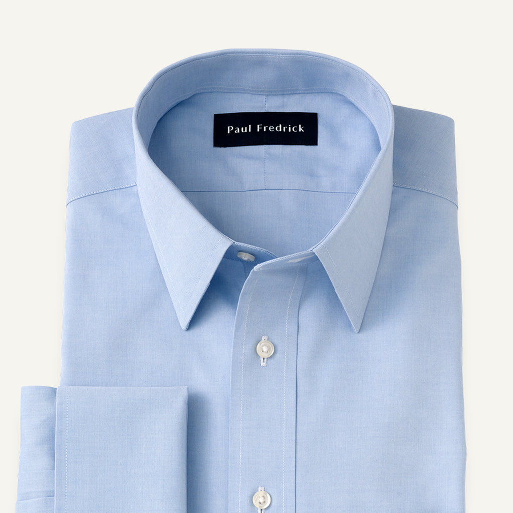 As its name suggests, this collar’s points spread out to give a larger tie knot ample room. The spread collar frames your face well. It’s also becoming more popular without a tie and even worn without a jacket. Rolling up the sleeves and dressing down with jeans is not out of the question for the spread collar.
